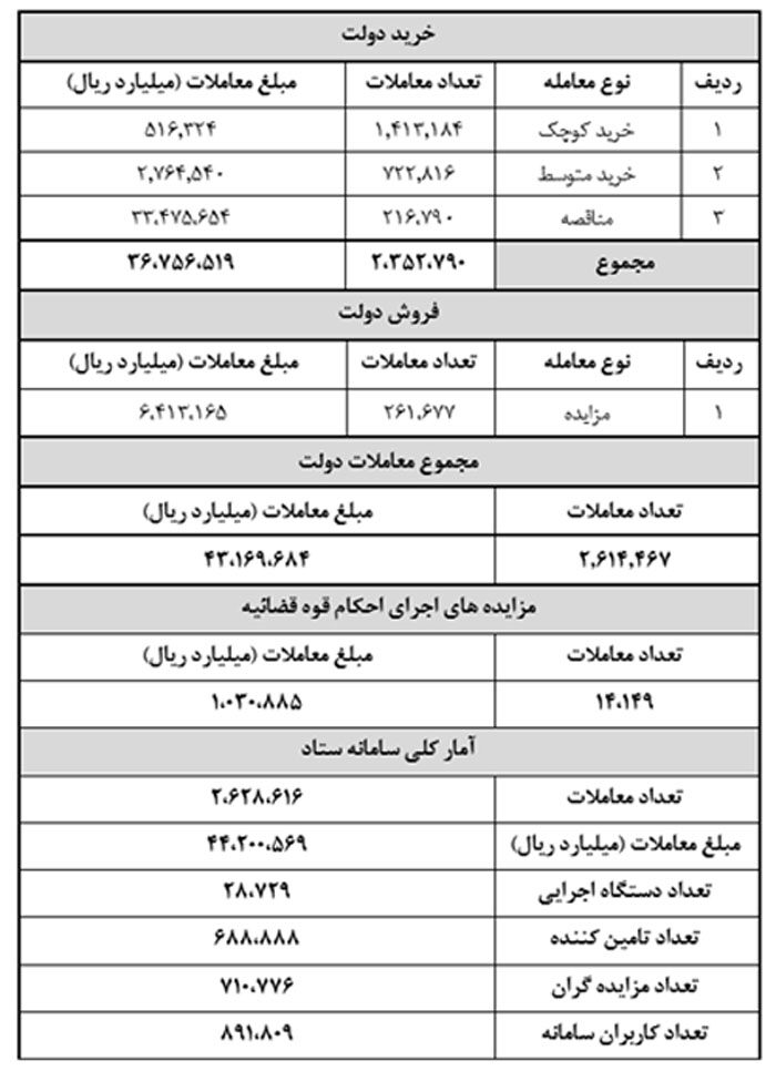 آمار عملکرد سامانه تدارکات الکترونیک دولت (ستاد) تا پایان خردادماه سال ۱۴۰۴
