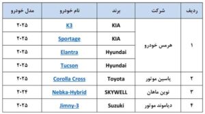 متقاضیان پس از پایان مهلت وکالتی کردن حساب لغایت روز شنبه ۱۵ آذرماه ۱۴۰۴، لازم است به منظور ثبتنام و انتخاب دو اولویت از فهرست محصولات ارائه شده به سایت https://saleauto.ir مراجعه و مطابق با شرایط عمومی مندرج در سامانه، ثبتنام اولیه خود را انجام دهند.