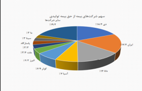 همچنین در بررسی سهم شرکت های بیمه در بازار ۱۰ شرکت بیمه دی (۱۸/۴%) ، ایران (۱۷/۴%) دانا (۱۴%)آسیا (۷%) کوثر(۶/۹%) ملت (۳/۴%) پاسارگاد (۳/۳%) سینا و ما هر کدام (۳%) در مجموع(۸۰/۸%) از حق بیمه تولیدی بازار را به خود اختصاص داده و (۱۹/۲%) مابقی حق بیمه توسط ۲۲ شرکت بیمه دیگر تولید شده است. این موضوع نشان میدهد که ساختار بازار بیمه بهطور عمده در اختیار چند شرکت بزرگ است و بیمه دی در حال حاضر در صدر این هرم قرار دارد.