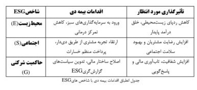 شاخص ESG اقدامات بیمه دی تأثیرگذاری مورد انتظار