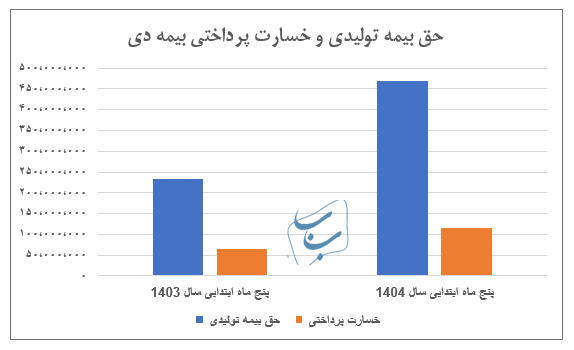 در مجموع سال ۱۴۰۴ نیز، حقبیمه تولیدی پنجماهه بیمه دی به ۴۶۹,۰۱۷ میلیارد ریال رسیده که در مقایسه با حق بیمه ۲۳۳,۳۹۵ میلیارد ریالی دوره مشابه سال گذشته، رشد ۱۰۲ درصدی را نشان میدهد. چنین رشدی نشاندهنده آن است که بیمه دی توانسته طی سال جاری، با گسترش سهم خود در بازار و تنوعبخشی به خدمات، پرتفوی خود را دو برابر کند.
